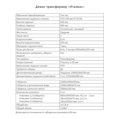 Диван-трансформер Италмас (Аквилон) продается в интернет-магазине v-omske-mebel.ru по цене 73 376 руб. Есть доставка по Омску и Омской области. Возможность подъема на этаж и сборки уточняйте у менеджера по телефону 8(800)505-27-11.