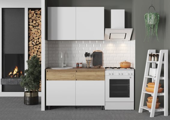 • 1 навесной шкаф (1200 × 704 × 286 мм) с полками и местом для посудосушителя (приобретается отдельно).